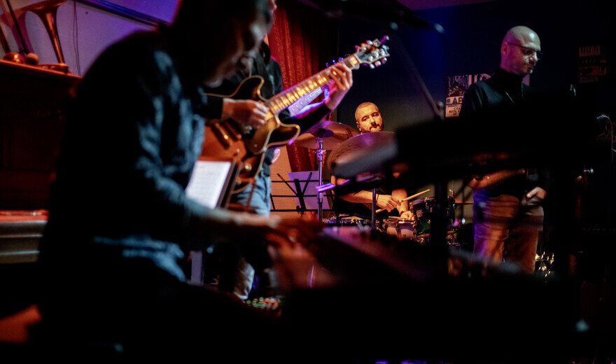 At its core is Martin Denev — a pianist and keyboardist with an international career spanning stages across multiple continents, including festivals such as North Sea Jazz and Java Jazz. Educated in Rotterdam and at Berklee College of Music, he develops a distinct musical language where groove and improvisation shape the narrative.