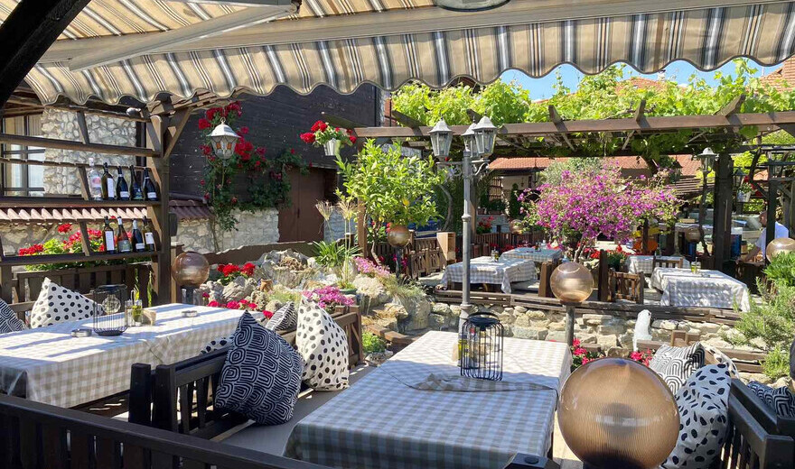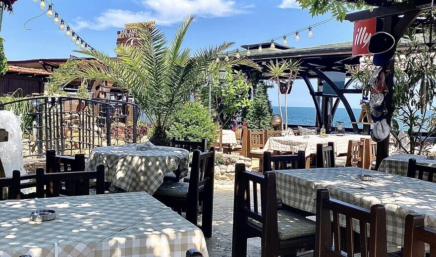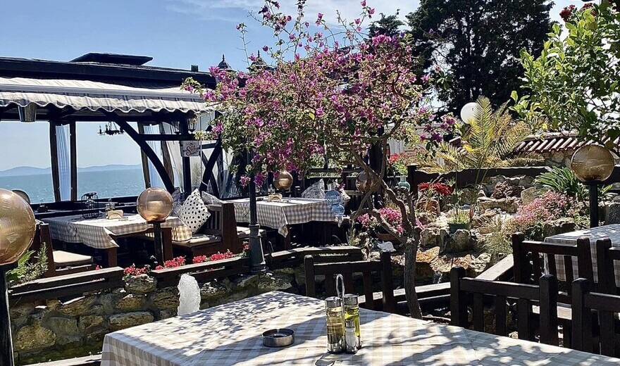 The Emona Restaurant is situated on the sea-shore, in the south-east of the old Nessebar, at the end of the main street called ‘Messambria’. The restaurant has more than two hundred seats, one hundred and fifty of which are panoramic, with a view to Bourgas Bay and Emine Cape (the cape has actually given the restaurant its name). More than a hundred of the panoramic seats on the sea-shore are protected from the summer heats and showers by beatifully designed bowers. The restaurant blends old Greek style with Bulgarian renaissance style, both of which are typical of the old Nessebar. The terrace is designed like a big garden with a lot of exotic flowers, alpinariums and pools with running water. The restaurant is one of the places on the Bulgarian sea-side that you visit the most.