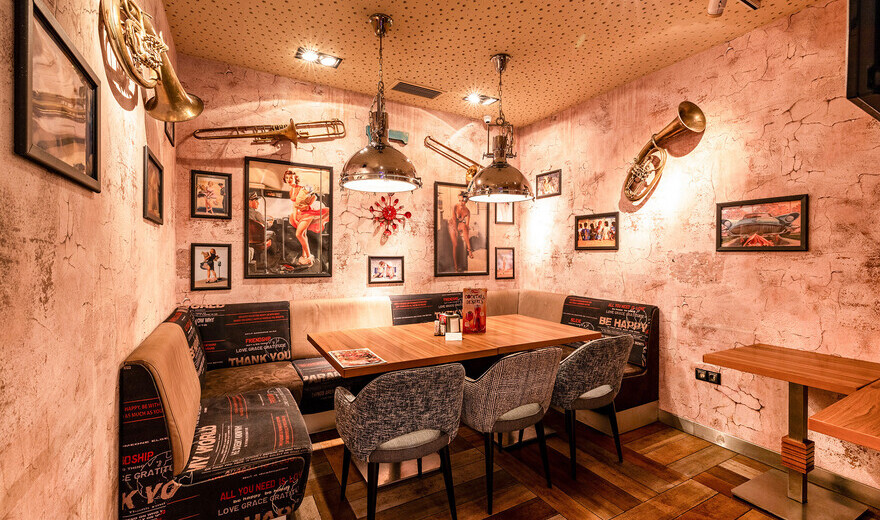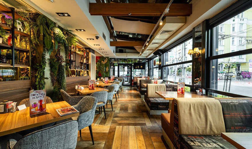 Happy Rakovski can accomodate 220 customers in its closed area and in the summer another 60 customers in the garden of the restaurant.
